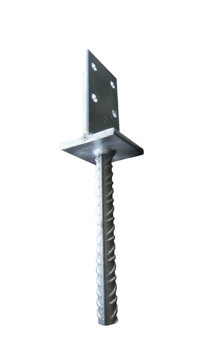 Steg zum Einlassen: Der Pfostenträger verfügt über einen stabilen Steg (130x80x8 mm), der ein einfaches Einlassen in das Fundament ermöglicht. Dadurch wird eine feste und sichere Verankerung gewährleistet.