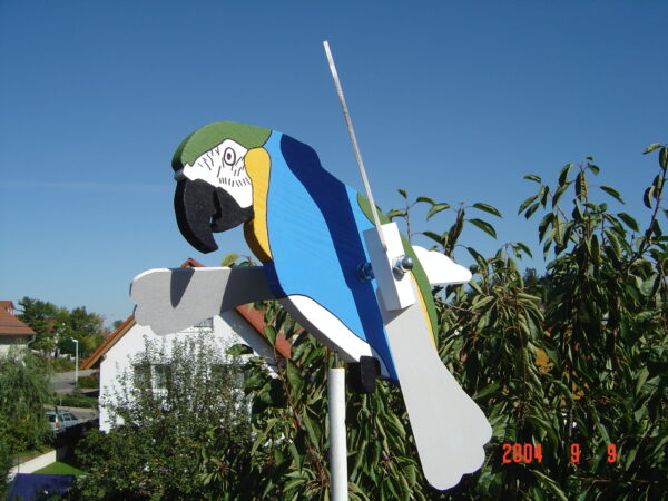 Bringen Sie mit unserem handbemalten Windspiel Papagei Farbe in Ihren Garten